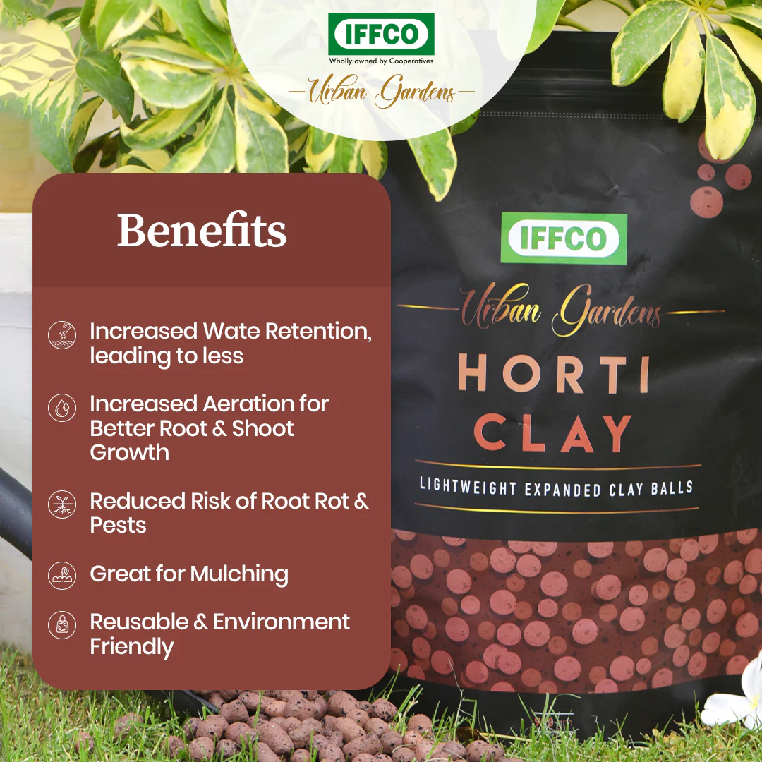Horti Clay is a Lightweight Expanded Clay Aggregate (LECA) that retains water and releases it for the plant as per its requirement. It prevents plants from completely drying out but still provides proper drainage in the case of overwatering, reducing water wastage. Further, Horti Clay reduces the risk of root rot and pests as it aids aeration by leaving air gaps between the clay balls, facilitating oxygen circulation to the roots. Horti Clay is reusable and environment friendly, making it a great medium for plants to grow in.